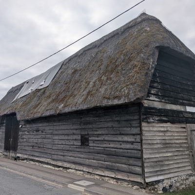 House, now 2 houses. 1911, converted 1978. Designed by M H Baillie-Scott for Dr John Forbes Cameron, later Master of Gonville and Caius College. Red brick with plain tile roofs and plain tall stacks. 2 storey and attics.