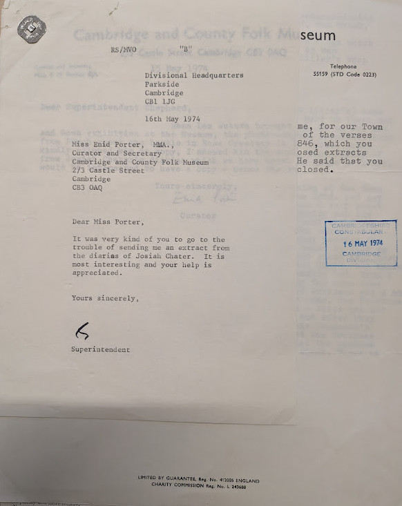 Catherine E Parsons (d.1952) was a local historian and avid collector from the village of Little Abington.