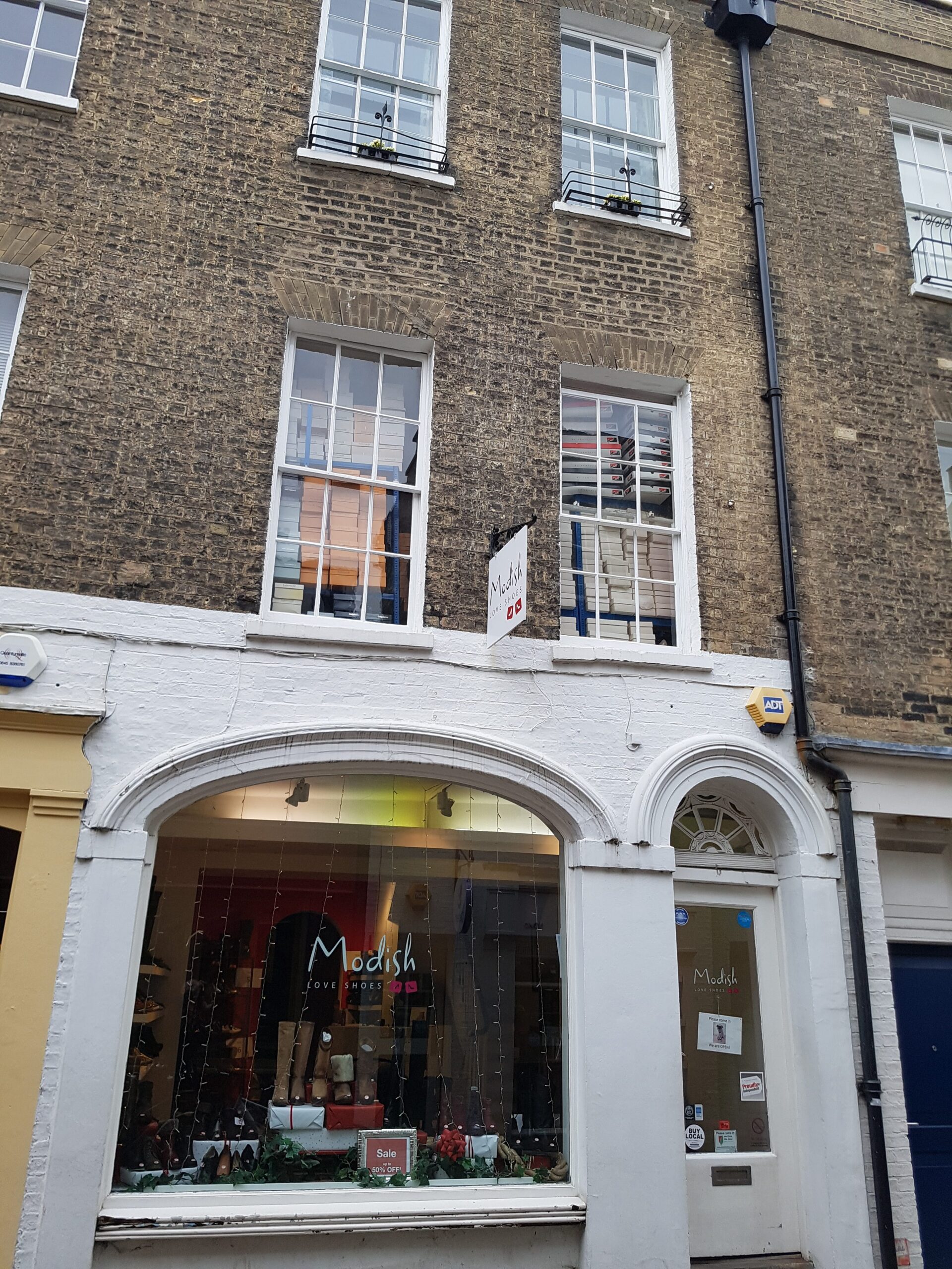Early / Mid C19. Grey gault brick. 3 storeys and attic, 2 windows each, sashes with glazing bars. Nos 3 and 5 have the original elliptically headed shop – windows. Round-headed doors with stone imposts and cast-iron traceried fanlights. The other shop fronts are modern. 2 attic dormers, parapet, roof not visible, but probably slate. (RCHM 161).