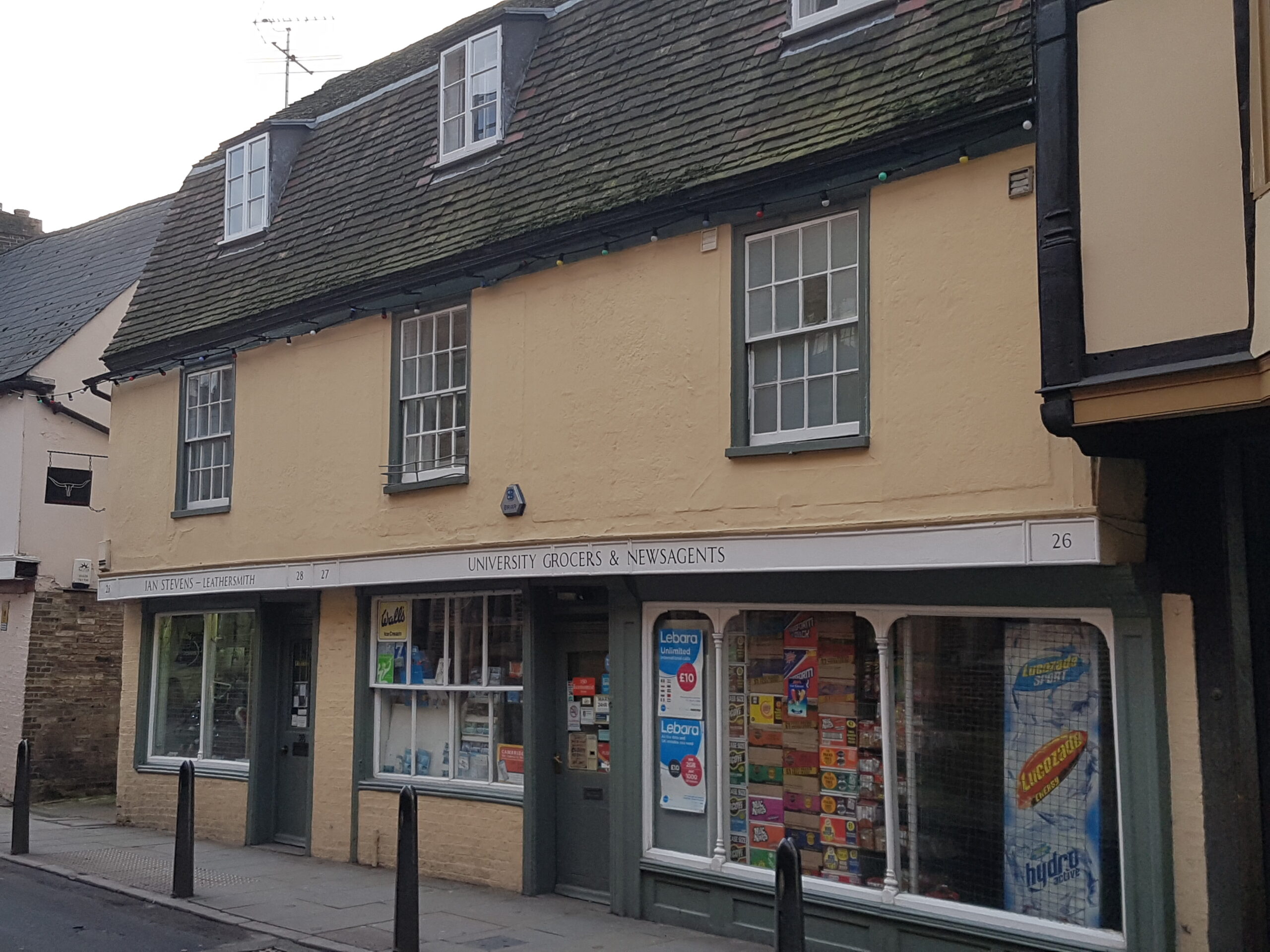 1959 Royal Commission on Historical Monuments Survey of Cambridge: House, now 26,27,28,28a… of two storeys with attic, has walls of timber-framing …built in the 16th cent, but largely remodelled and entirely reroofed in the late 18th cent.