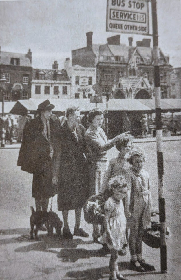 15/4/1905 Both Cambridge buses started to ply for hire and the novelty induced people to make trips. Had several more ‘buses been running they would have been crowded. The scene on Market Hill was unprecedented. Apart from those who lined one pavement in the hope of obtaining a seat it was alive with folk who were content with watching. As soon as a vehicle drew up a crowd swarmed around the steps, clutching the handrail and endeavouring to get a foothold on the step. Each time there were many left waiting on the pavement disappointed and most waited until it returned. (Cam.News)