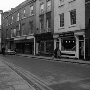 William Heffer opened his bookshop in Petty Cury in 1896 having bought out a chemist whose stock he sold off, but the giant bottles were to remain in the windows up till 1922. On the day that war broke out, 1914, the Oak-Room-and-Gallery was opened, stretching backwards where the Lion’s stables had stood. As the shop expanded upstairs into the rest of the building it retained mementoes: the wallpaper was that of the university lodgings, while bedroom 40, renamed The Science Room, still sported a chandelier. In 1928 the shop expanded into adjacent premises and a new frontage, designed by Arthur Heffer was installed. [H. Bosanquet. Walks round vanished Cambridge: Petty Cury. 1974]. The firm moved to Trinity Street in 1970 and the building was demolished as part of the Lion Yard redevelopment that saw the clearance of the south side of Petty Cury and the lanes and alleys beyond. Had the Antiquarian Society photographers realised the extent of the demolition that was to occur they may have devoted more of their plates to the area.