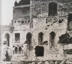 Cambridge Standard 13.9.1935: Last year, when the front of the college was restored the two gateway turrets facing St John’s Street were demolished and rebuilt; now the turrets within the court are being renovated. Restoration work has disclosed old oak panelling.