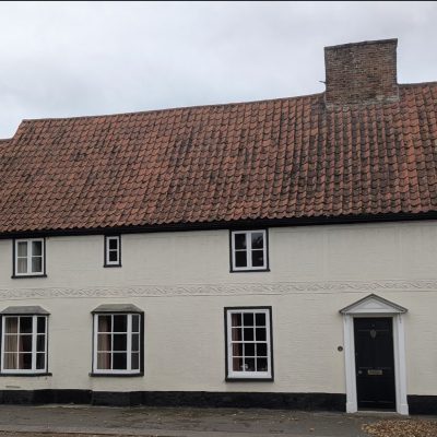 Farmhouse, late C18. Painted local dark red brick. (Historic England)