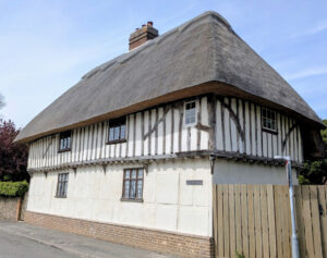 Guildhall to St. James’ guild, now a house. Built before 1495. Timber framed, part plastered. … Building used as poor house in C18, scratched date of 1717.