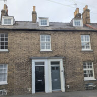 Part of a range of C18 brick cottages, now painted, … An C18 painted coaching sign was discovered on the front, 1st storey, and has been restored it reads:- “Lynn, Cambridge and Stage Waggons to the Bull Inn Bishopsgate Street everyday. Isaac March and william Swan proprietors”.