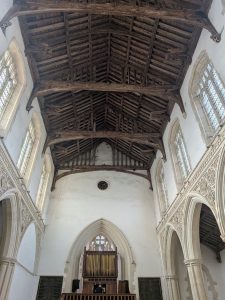 A Houghton notes in Memories of Isleham Village, that there is a 15th cent. brass. There is also a table made of bog oak and a seven-branched candlestick – a gift from Jewish schoolboys who were billeted there in WWII.