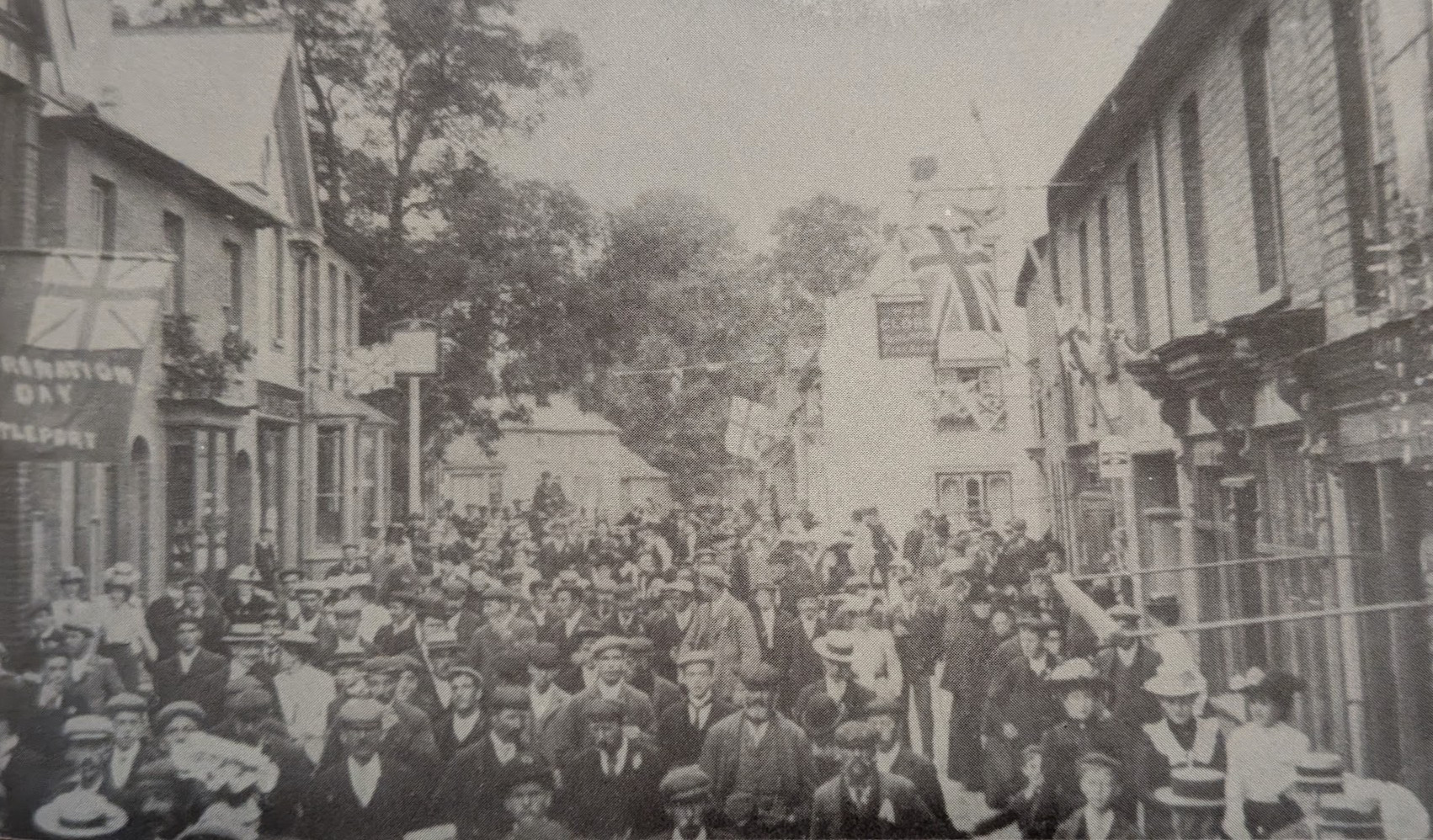The parade assembled at Crown corner and marched along Main Street to the bottom of Granby Street.