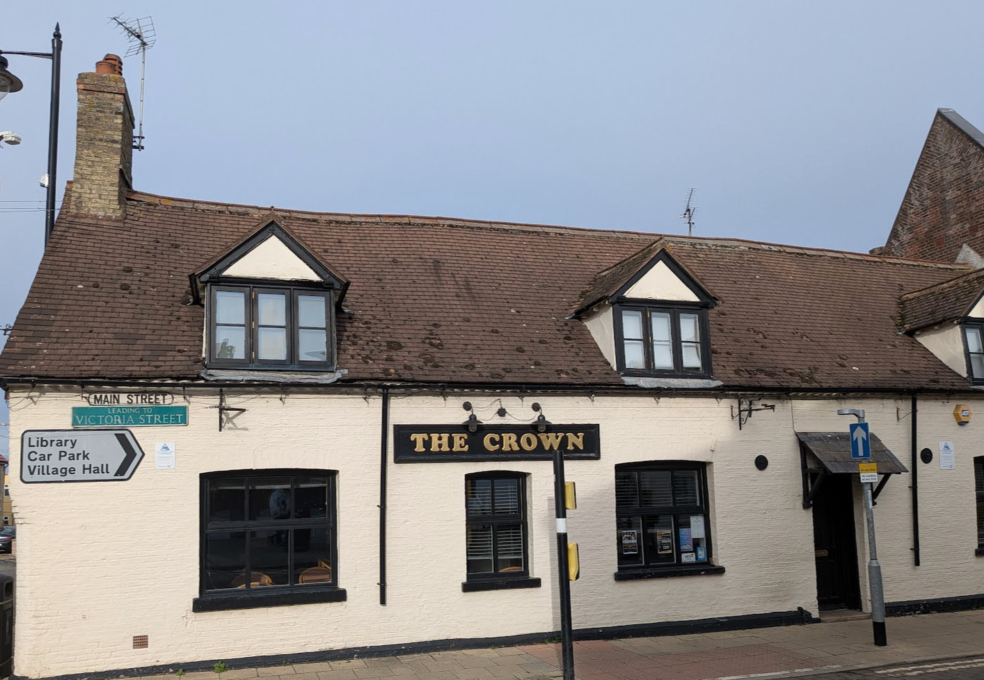 The Crown, Main Street, Littleport c.1900In the photo the baker is delivering bread to the Crown public house c.1900. The old house next to the Crown is Meader House, home of Herbert G Martin, later occupied by the Capital and Counties Bank.