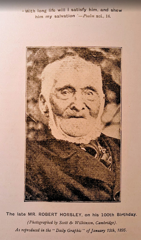 John Horsley of Soham b 1792Robert Horsley, Sen., The Soham Centenarian was published by his grandson, Arthur Bullman, in 1895. It is a short biography of 16 pages.