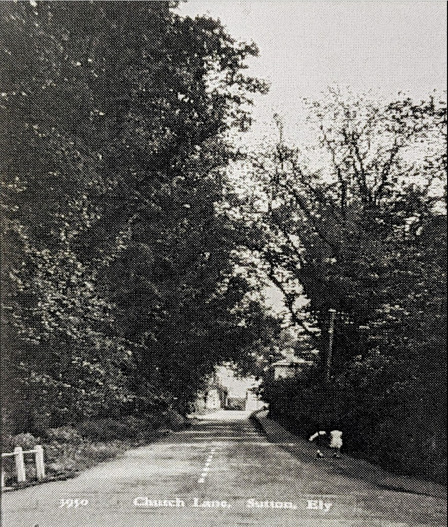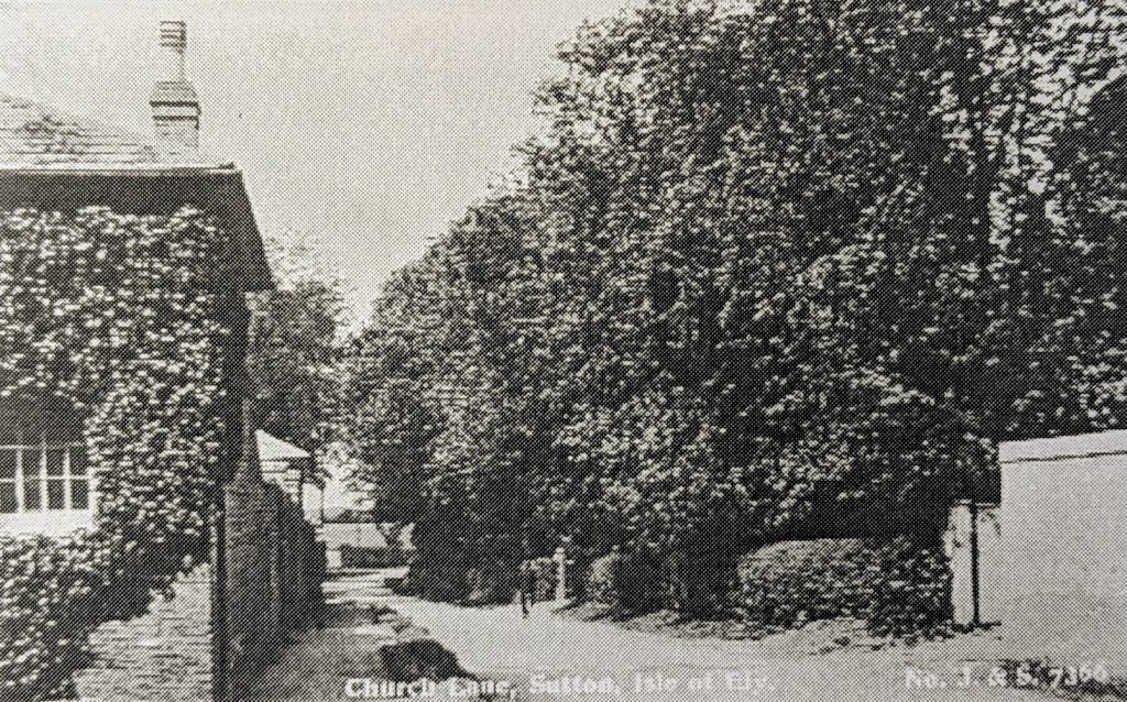 Church Lane, Sutton, 1920sOn the left of the photo are parts of the old vicarage buildings that were demolished in the 1960s.