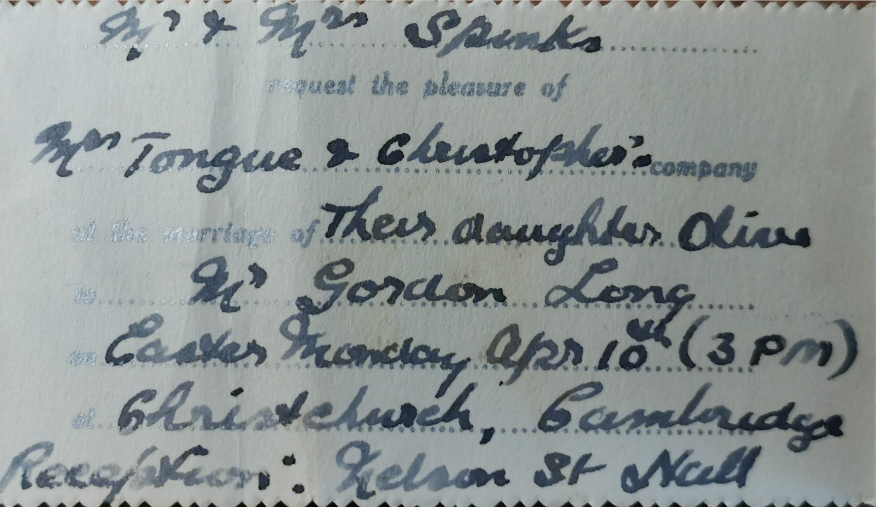 Eva’s mother lived in a house overlooking Kings College Chapel on Kings Parade. Claude did not return home until December 1945. Iris had to wait even longer for her husband to return home from Italy, where he was a prisoner.