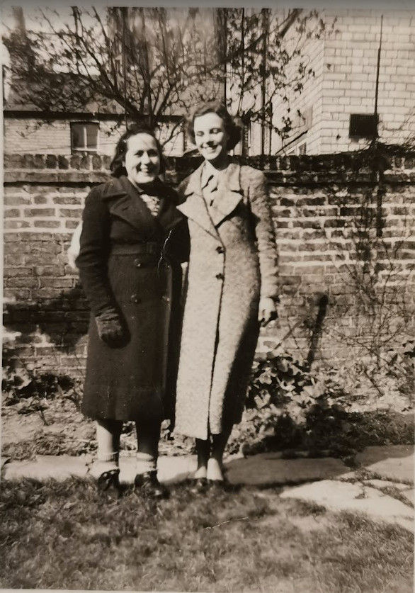 date unknown, 6 Hills Road, tall lady is Miss Penny, later Mrs Christmas. Other woman is a Spanish refugee.