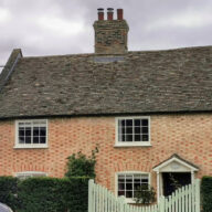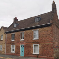 Late C16 or possibly earlier timber framed and roughcast rendered house of three bays and lobby entry plan. In the C18 the bay to the north was cased in brick and the two gabled wings’ to the rear were added.
