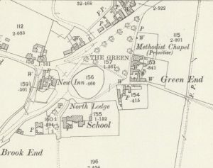 Brampton School & Pond c.1910The school was provided by Lady Olivia Bernard Sparrow. She died in 1863 and left her monogram on many buildings on her estate – ‘O.B.S.’