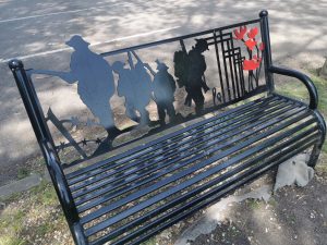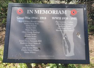 Behind the cottage is a car park with a war memorial.