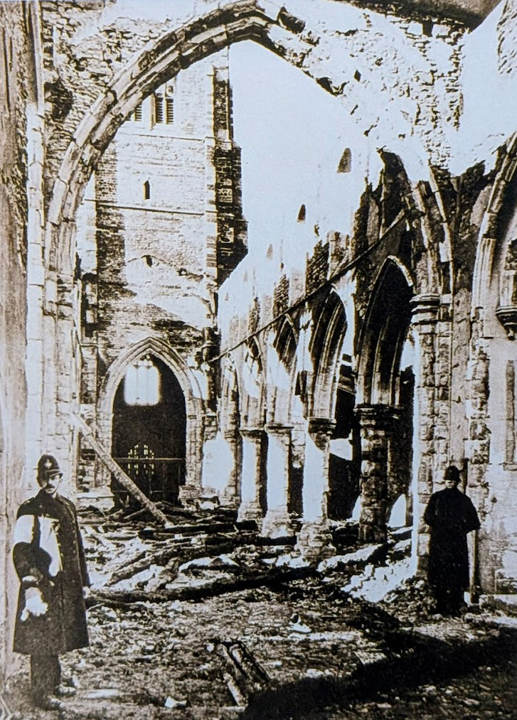 In February 1930 the church was almost completely destroyed by fire but had been rebuilt two years later.