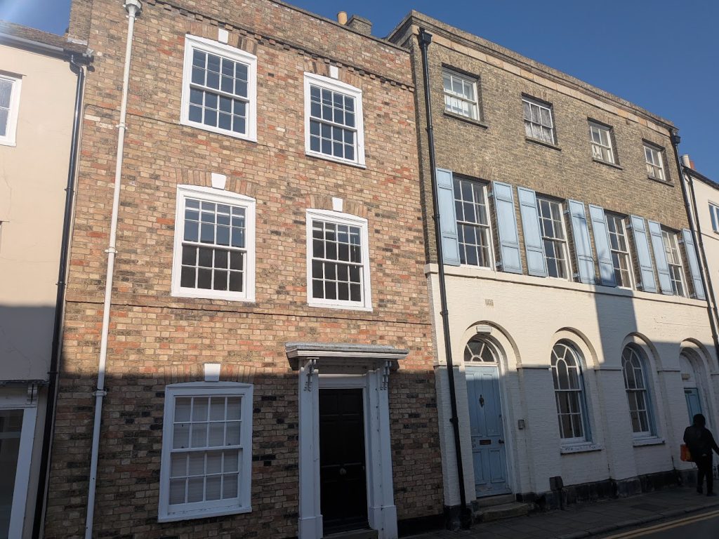 Early C19. 3 storeys, gault brick, stone band at 1st floor level.