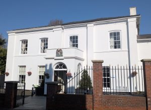 Stands on the site of House of Austin Friars, founded circa 1285. Granted to Cromwell family at Dissolution and said to be the birthplace of Oliver Cromwell. The house was almost entirely rebuilt at the beginning of C19. It contains some recorded material and may in part incorporate older work. Circa 1830.