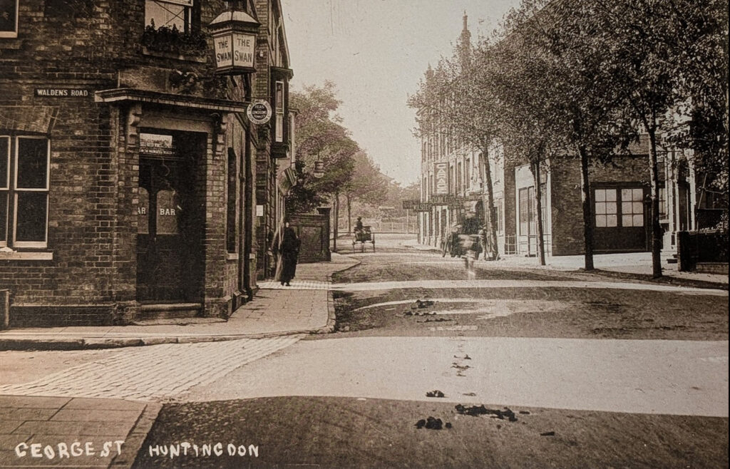 George Street, Huntingdon c1920 (Hunts Archives)Opposite the Swan were the Windover Carriage works.