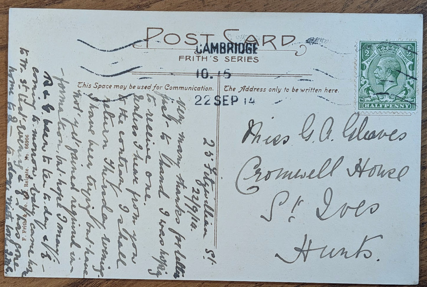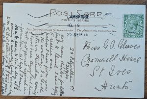 In 1914 Grace received a postcard from someone at 25 Fitzwilliam Street Cambridge.