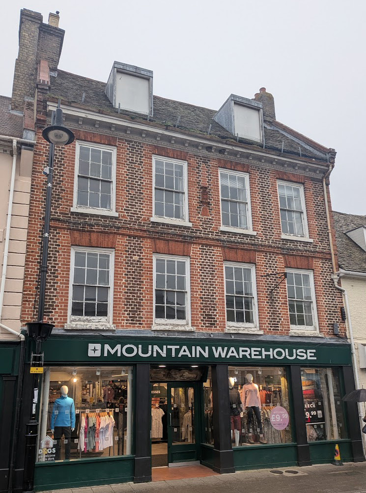 Circa 1720. 3 storeys with attics, brown brick with red brick dressings, moulded band between 1st and 2nd storeys, enriched modillioned eaves cornice.
