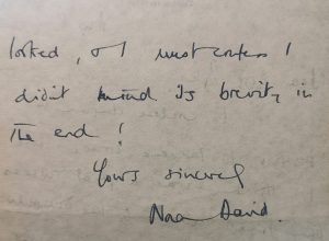 They had bought it from David Knight, the marketing director of Cambridge University press. He had bought it from Richard and Lady Nora David. Richard David was an expert on Shakespeare and sedges.
