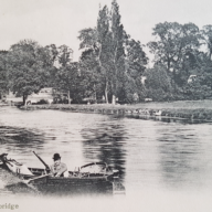 Newnham Mill Pool,c1900. Jolly Millers, left, brewery late The Malting House on right. Mott’s cows are fording the river.
