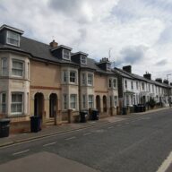 The view towards Mill Road. Apart from the houses opposite where there was previously railway sidings, the main difference between the two pictures is that today the houses appear to have been rendered so all the decorative brick work just below the roofline has been covered.