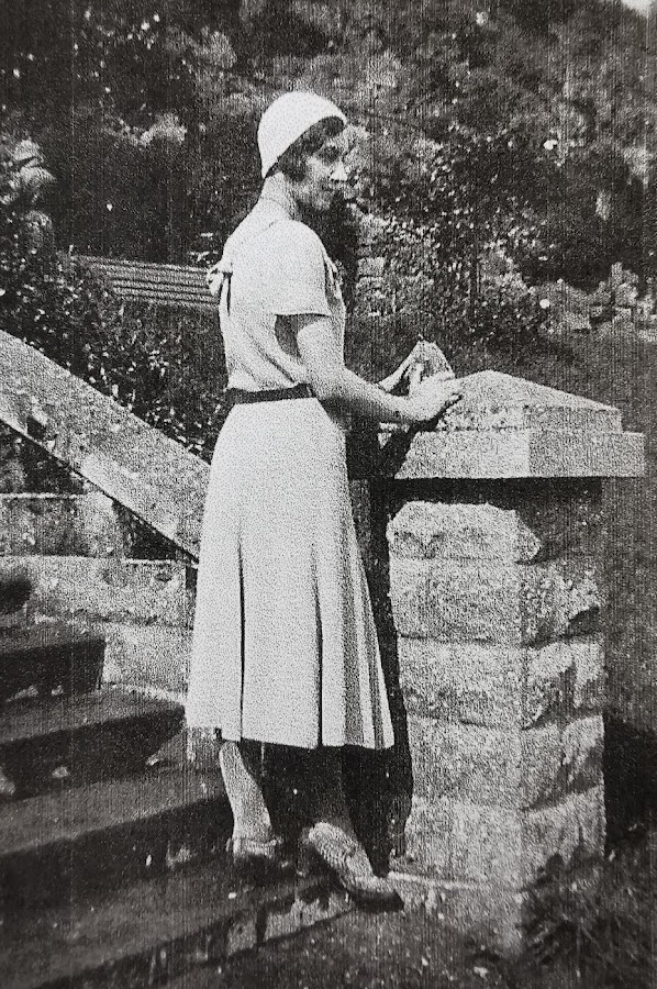 They married at Emmanuel Congregational church Cambridge 2 September 1933. The reception was at St Anne’s Coleridge Road. The bridesmaid, from left were Miss Penney, chief cutter, and Miss Iris Brooks, a hairdresser in Castle Street. All the dresses were made by Constance Pyle and assistants.
