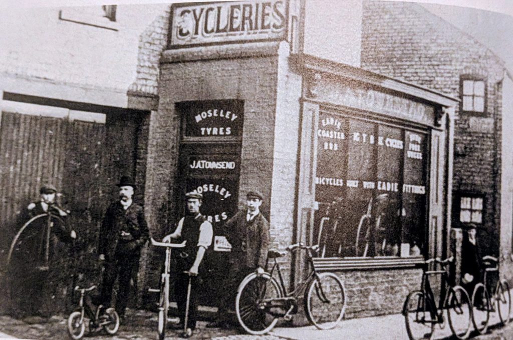 Townsend's Cycleries, Norfolk Street CambridgeThe John Albert Townsend cycle making business started in 1895. His father kept the Royal Engineer public house in Norfolk Street. the workshop had started as a cowshed as when he first married he started a dairy business with a herd of cows. After two years he switched to cycle manufacture. he set up with a colleague called Loker and they made their name as manufacturers of the Light Blue Bicycle, a made to measure bicycle. John’s personal bicycle was put on display at 15 Burleigh Street.