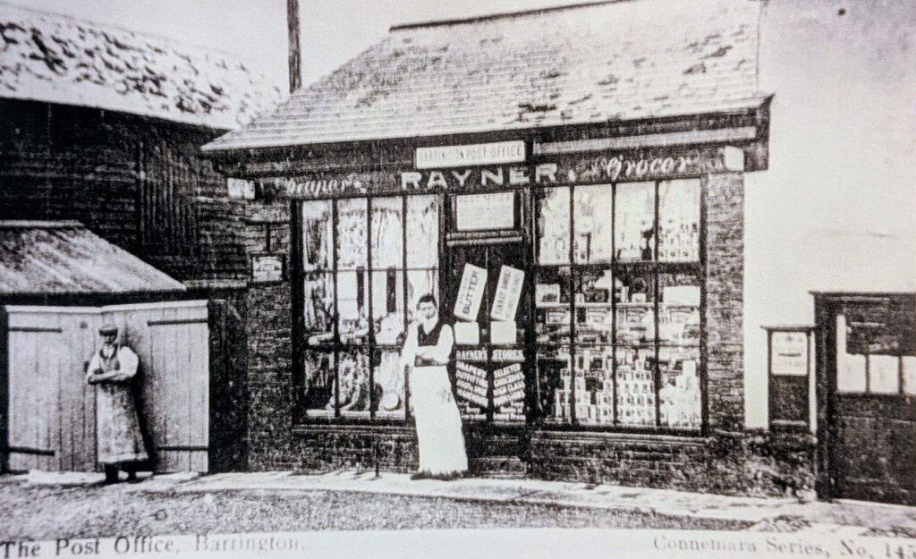 Post office Barrington c1900William Rayner Jnr is outside the shop. The first telegraph in the village was installed here in 1896.