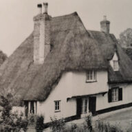 Cottage, originally a pair. Late C18 or early C19. Timber-framed and plaster rendered with longstraw thatch roof and original shared grey brick stack of two flues.