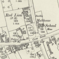 Comberton maze, c.1900 (photo W H Hayles) (Cambridgeshire Collection)According to Vanishing Cambridgeshire a turf maze, known locally as ‘The Mazles’ was cut at Comberton some time after 1660, probably as a copy of a surviving maze at Hilton. In 1846 it was enclosed in the playground of the village school. However a new maze was cut in 1909 on a different site and to a different design. This was destroyed in 1928 when the school was extended.