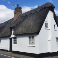 Cottage of C18 origins, altered C19. Timber framed and plastered with mansard roof, thatched with long straw.