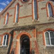 Built in 1902. Mow Cop is a hill in Staffordshire where primitive Methodism was founded.