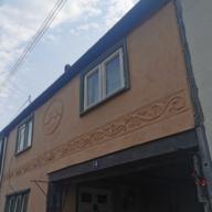 Mainly C17, remodelled early C18. Renovated. Timber-framed plaster rendered and red brick axial ridge stack. … Inside: broad chamfer stops to main beam and studwork of substantial scantling indicate a C15 date or possible reuse of material.