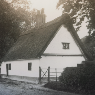 Row of cottages, possibly originally a single dwelling. C17 timber-framed and plastered with tarred and plastered brick plinth.