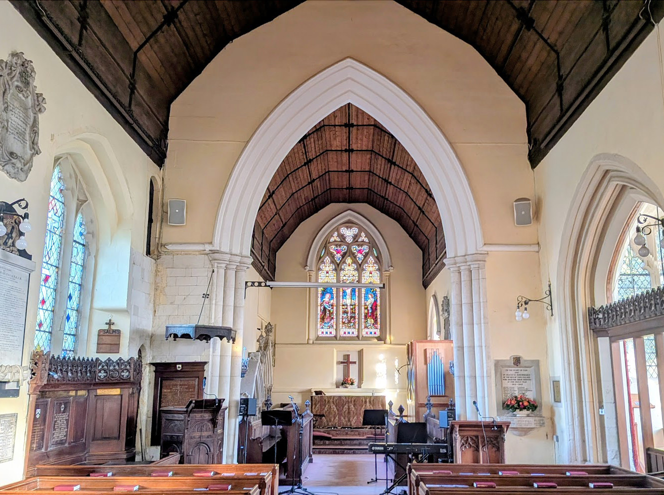 Parish church of C12 origins but much altered in C14 and C15 and again in 1854 and 1878.