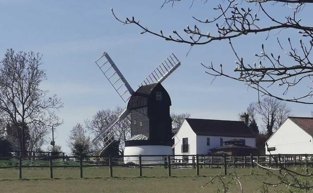 Post Mill. Timber-framed, weatherboarded on brick plinth. Boat cap and four patent sails. Removed from Ellington, Huntingdonshire in 1936. Inscription inside the Mill “Walter Ambrose Harding of Madingley Hall caused this Windmill to be brought from Ellington in Huntingdonshire and to be rebuilt here on the site of the old mill which fell down in July 1909. Mr C J Ison, builder of Histon finished it the 1st June 1936”.