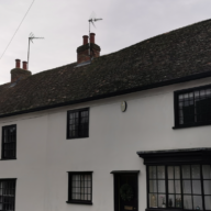 Smithy. Mid C19. Clunch with gault brick dressings dentil eaves cornice and stack.