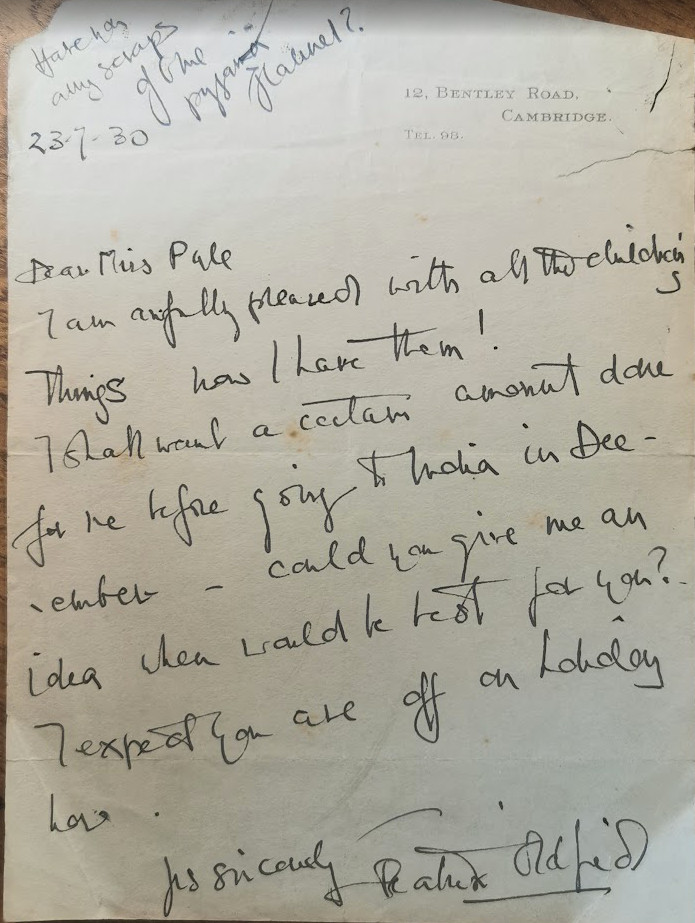 1930 letter from Beatrix Oldfield to Constance Pyle
