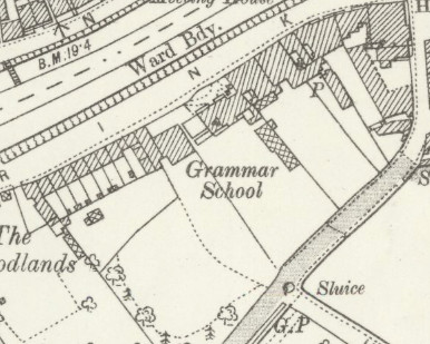 Grammar School, South Brink, Wisbech 1920s (Bennett)The first Grammar school was in Hill Street. The school moved here, former premises of George Duppa Collins, in 1897.